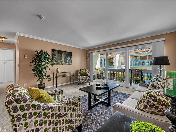 This second-floor condo is located in a resort-style community with many amenities, such as two pools, a spa, a clubhouse, a workout room, a sauna, and two tennis courts. The condo itself features a spacious living room and a balcony, providing a great view of the surrounding area. The kitchen has been upgraded with granite countertops and light wood cabinetry for storage. Additionally, the condo has dual-paned windows and a water heater upgrade. The community features beautiful landscaping with streams, waterfalls, and a koi pond, providing a serene environment. There are many places on the property to entertain family and friends. Overall, this condo offers a great lifestyle choice for those seeking resort-style living with many amenities.