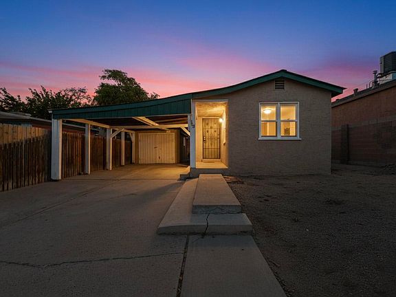 Welcome to this charming adobe home! This one bedroom, one bathroom home is close to UNM and has beautiful parks within walking distance. NEW PAINT, NEW CARPET, NEW WINDOW BLINDS, NEW BATHROOM SINK FAUCET. The kitchen offers adequate cabinet space and gas range and refrigerator stay! The basement provides easy access to plumbing, backyard is walled for privacy and front and back yards are landscape ready. Super cute and cozy home!