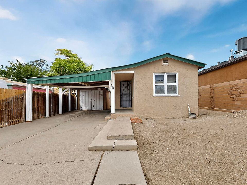 Welcome to this charming adobe home! This one bedroom, one bathroom home is close to UNM with easy access to I-25 and parks within walking distance. The kitchen offers adequate cabinet space and gas range and refrigerator stay! The basement provides easy access to plumbing, backyard is walled for privacy and front and back yards are landscape ready. Home has metal roof. Super cute and cozy home!