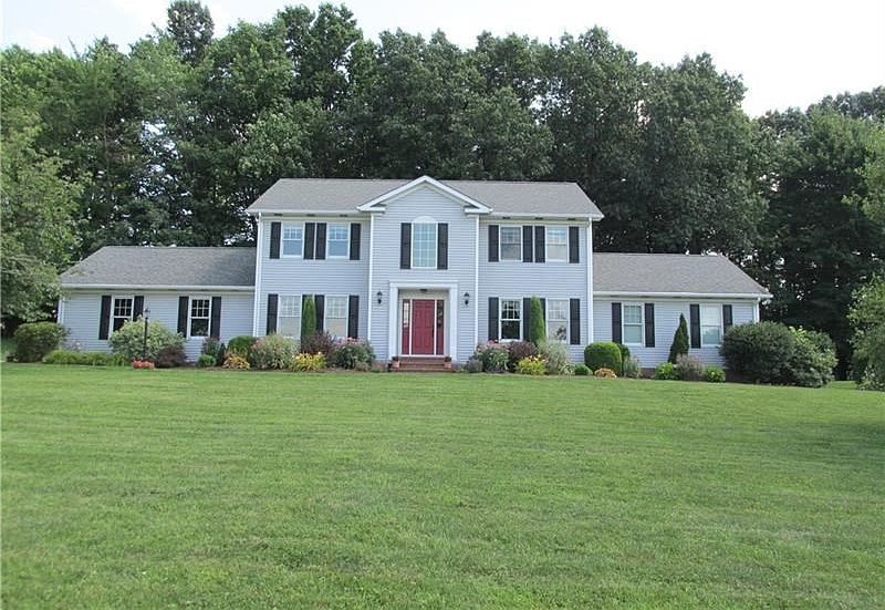Gracious and stately residence on picturesque homesite with mountain views! Over 3.5 peaceful acres within 5 minutes of downtown Ligonier. Efficient GeoThermal HVAC system keeps heating and cooling costs low. Lovingly maintained and like brand new. Neutral, fresh and bright interior. Two story great room with soaring ceilings and 2 story brick fireplace opens through french doors to the back yard. Spacious formal living and dining rooms. Large kitchen with new stainless appliances, breakfast bar, center island, large pantry, and informal dining also leads to the patio outdoors. Wooded area along the backyard offers privacy and lovely view of nature year-round from the breakfast area. Peaceful and very large master suite and convenient adjacent laundry room complete the main level. Grand stairway with landing balcony leads to 3 large bedrooms and a full bath. Huge, clean, and dry unfinished basement with plumbing already in place to add another bath. Come enjoy the serenity!