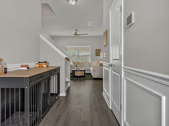 Better than new! This desirable Benson Plan by Smith Douglas Homes offers stylish upgrades and move-in-ready comfort. Enjoy a private, fenced backyard, blinds already installed, and a refrigerator in place—plus a convenient location just steps from the community mailboxes. Inside, you’ll love the open layout featuring luxury vinyl plank flooring throughout—no carpet anywhere! The modern kitchen shines with white cabinetry, granite countertops, stainless steel appliances, a center island, walk-in pantry, and even a built-in desk. The freshly painted interior welcomes you with wainscoting details and two coat closets in the entry foyer. Upstairs, a 9x8 loft provides flexible space for work or play, while the spacious primary suite offers a relaxing retreat with a walk-in closet and private bath. Move right in and enjoy easy living in a beautiful, like-new home!