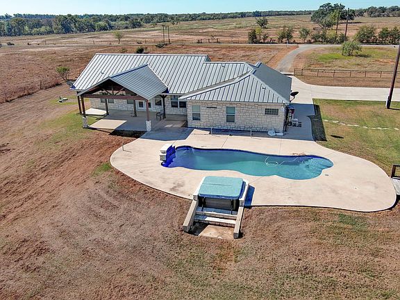 Country Haven with Dual Homes & Endless Possibilities! Welcome to your Country escape! This beautiful 5-acre property boasts of two beautiful custom homes, both have durable metal roofs and surrounded by sweeping Texas views. The main residence (1,996 sq. ft.) features 3 spacious bedrooms and 2 bathrooms with an open concept plan. Enjoy the warm glow of hardwood floating floors, a bright open-concept layout, and custom natural wood cabinetry with pull-out shelves. The primary suite offers a luxurious bath with dual shower heads, and the oversized laundry room with nice counter space and cabinetry makes daily chores a breeze. The large living room, dining, kitchen are open to each other. The guest rooms are nice sized and have good closet space! The covered front and back porch are nice for relaxing or entertaining! Entertainment-ready inside and out with an outdoor pool area, a large concrete patio and covered patio with TV set the stage for unforgettable Texas evenings. The second home, a stylish barndominium, adds even more flexibility—complete with 1 bedroom, 2 full baths, and generous living, dining, and game space. Perfect for guests, multi-generational living, rental income, or your very own party barn! The barndo has 2 large, covered porches overlooking a gorgeous oak tree and pond! For hobbyists or RV travelers, the barndo has an attached 1,250 sq. ft. insulated storage area easily fits a 40-foot motorhome, offering 50-amp power, water/sewer hookups, or workshop functionality. Bring your horses or livestock—the barn/pole barn is ready to go! Located just minutes from Historic Bastrop's vibrant live music scene, fine/casual dining, shopping, etc. It is also only 20 minutes to Tesla, Starlink, The Boring Company, and Austin-Bergstrom International Airport, this property delivers privacy, functionality, and endless opportunity—a rare find in today’s market. Come see where country comfort meets modern convenience!