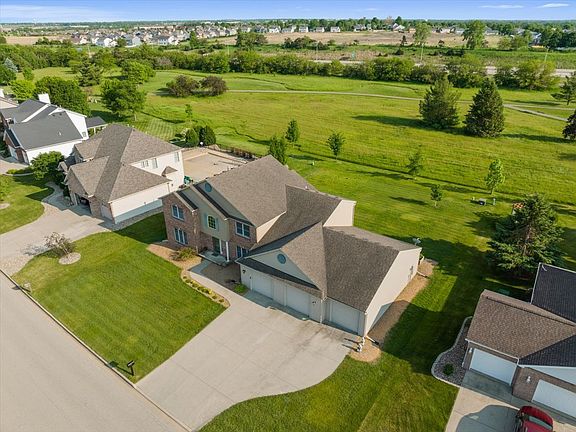 Golf course living awaits you at this expansive 5 bedroom, 3.5 bath home situated on hole 3 at Ironwood! The main floor features a large foyer, spacious office, formal dining room and wide open kitchen/living room - all with gorgeous brand new hardwoods and fresh paint. Living room offers a cozy gas fireplace and doors to the back patio overlooking the picturesque yard and golf course. Just off the kitchen, you will find a mud room, half bath and huge laundry room all with tile flooring. Mud room connects to the MASSIVE, 1,400 square foot garage with 3 stall doors and plenty of room for 5 cars. An extra wide staircase (5') takes you up to the impressive primary bedroom with vaulted ceiling, beautifully updated en-suite, second gas fireplace and two large closets (currently blank slates for new owners to design to their preference). 3 additional roomy bedrooms and a full hall bath are also located on the second level. Another 5' wide staircase leads to the large finished basement, which offers a family room with egress, kitchenette, theater room with projector, screen and surround sound, 5th bedroom with egress, bonus room and full bathroom. Enjoy life in Ironwood and make this beautiful, extra-spacious home your own! (Kitchen counters replaced in May '23. Stove and dishwasher currently stored in the garage after kitchen renovations - all kitchen appliances sold "as is". Brand new carpet and fresh paint upstairs in May '23.)