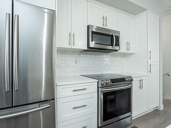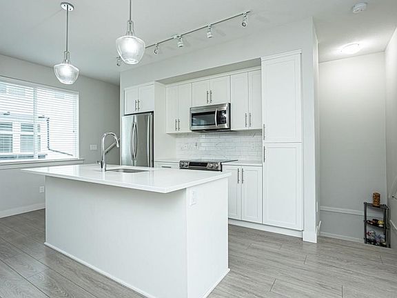 Welcome to Blackberry Walk 3—a contemporary craftsman-style corner unit townhome with 3 bedrooms, 2.5 baths, massive backyard & a side-by-side oversized double garage. This stylish home features an open-concept layout with Samsung stainless steel appliances, quartz countertops, 9 ft ceilings & large windows that fill the space with natural light. The primary bedroom boasts a vaulted ceiling, walk-in closet, and a spa-inspired ensuite with double sinks. Enjoy outdoor living with a private deck with mountain views, lower patio, and an over-extended fenced backyard to enjoy those summer days. Steps from schools, parks, YMCA, Bell Performing Arts Centre & transit. Easy to show with a day's notice, call to book a showing today! Priced approx. $100K under below assessment!