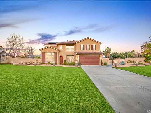 Location, location, location! Magnificent spender only scratches the surface. This Sycamore Canyon Estates home has tremendous value. With 3,655 Sq Ft, 5 bedrooms, 4 baths and a lot that is .73 Acres this home has plenty of space. As you walk in the door you will notice the valeted ceilings, breathtaking window trims and accessories, high end hardware throughout the house, and a gorgeous office. In the kitchen is a walk in pantry, butlers pantry, granite counter tops, gas cook-top, double oven, an open area to the living room with a built in entertainment center, and crown molding. This home comes with a down stairs bedroom that is great for guest or family for when they visit. Enjoy the free energy as the solar system is paid off, you have 2 A/C unit, and an amazing patio cover that is great for the sunrises and sunsets. What also makes the home so unique is the amazing views it offers from almost every room in the house upstairs. There is plenty of parking with a 3 car garage, and extra room for a RV, or boat. Your are close to highly sought after award winning schools, great shopping, and restaurants near by. Hurry and see this home before its gone.