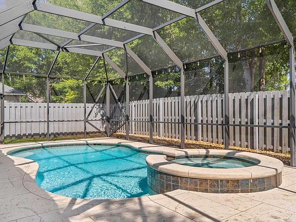 Stunning custom home in Nature Trail! This modern design is perfectly situated on a conservancy corner lot with beautiful curb appeal and a stacked-stone entry framing mahogany double doors. Inside, you’ll find 12' ceilings with double crown molding, a coffered family room, designer lighting, and tile flooring throughout. The gourmet kitchen features stainless steel appliances, Advantium speed-cook oven, gas cooktop, wine cooler, ice maker, leathered granite island, and custom double-stacked cabinetry. Triple sliding doors open to a screened lanai with fireplace, heated Gunite pool, and hot tub. The luxurious master suite includes a sitting area, 10x6 glass mosaic shower, double quartz vanities, and direct access to a large laundry room with granite and storage. Guest suite with private entry and beautifully appointed bath. Additional features include whole-house generator, surround sound, A/C dehumidifier, foam insulation, shutters, and electric blinds. Luxury living at its finest—schedule your showing today!