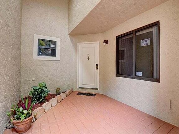 Location, location, location! Walk to Town Center Mall, Whole Foods, restaurants and more from this updated 2 bedroom/2 bath ranch with a single-family feel. Brand new impact windows just installed including both patios. Attached 1 car garage plus additional assigned spot steps from unit. Truly fantastic split bedroom layout with 2 HUGE sliding glass doors to private patios with room to grill, patio set, etc. situated in a garden like setting. Large master with oversized ensuite, double vanity, separate water closet. In unit washer/dryer and all appliances included. Fantastic small community with a wonderful pool, hot tub and grilling area. Complete new AC recently installed. Wonderful community in central Boca near desirable amenities. Call today for a private showing! Quick move OK!