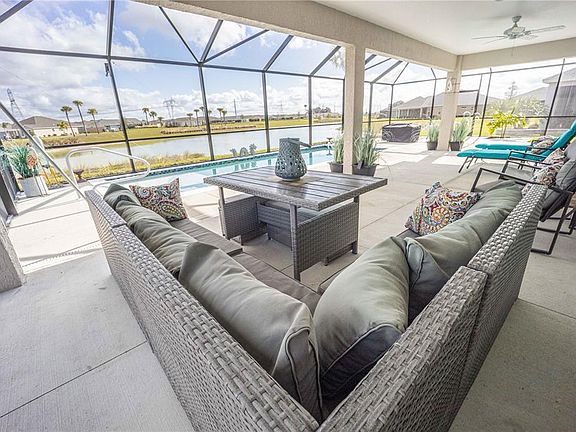 Available October 2025! Your next vacation awaits! Built-in 2021, you will enjoy this beautifully decorated Laurel Oaks POOL home in The Village of Citrus Grove Southern Oaks with over 2,300sqft of living space, 2 Car Garage with Golf Cart Garage, tile flooring throughout, tray ceilings, bbq grill, and everything you would need to enjoy your stay in The Villages. Whether it's cooking up your favorite meal in the open kitchen with New Stainless Steel Appliances, or relaxing on the screened-in lanai overlooking the water with your favorite book, you will feel right at home. The Master Bedroom boasts a King Bed, large closet, and private bath with a walk-in Roman shower. The remaining two bedrooms are located in the front of the home and share a full bath with a tiled shower. The living room and dining/sitting room combo is perfect for entertaining with family and friends. The NEW POOL is ready for avid swimmers and boasts a serene water view. Situated near the newly opened Homestead Recreation center and minutes from the Sawgrass Grove, St. Catherine's and Citrus Grove pool, and to Ezell Rec Center, this is the perfect location to experience all the new things The Villages are adding. Come experience what this home and the surrounding amenities have to offer! Call us today to book your next "stay-cation". SEASONAL RATES VARY by months, contact office for pricing. (No Smoking, Small/ Medium Dogs welcomed with breed restrictions and pet fee. Golf Cart included)