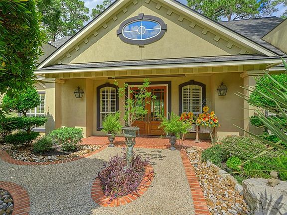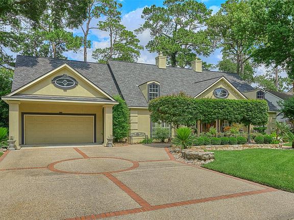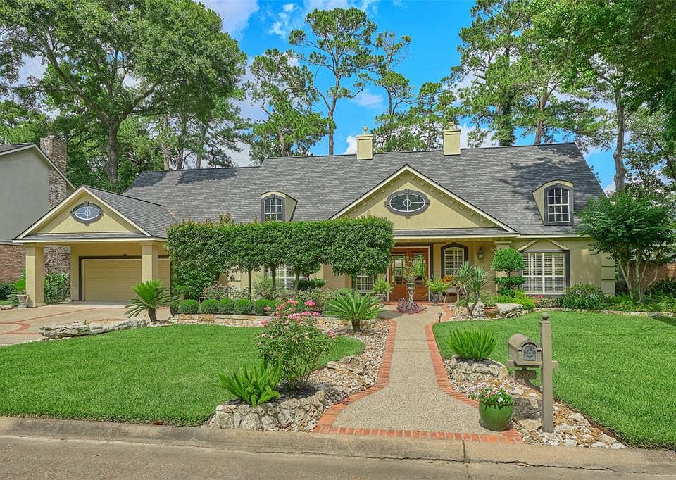 STUNNING 1-story home on the 5th fairway of the Jack Rabbit on Champions Golf Course! This golf course will be hosting the Women's US Open in 2020! A dining room equipped with a wine nook greets you near the front door. High ceilings & large windows grace the entire home. The large kitchen double ovens, top grade appliances, & TONS of cabinet space! A large secluded master suite features a fireplace, windows with views of the backyard & golf course, & a Hollywood bathroom. Features a hidden media room! The secondary rooms and game room have their own wing. The library/study features built in desk & shelves along with large windows with views of the golf course. A French Quarter inspired backyard features an outdoor kitchen, gorgeous fountain, in-ground fire pit, & prime views of the golf course. Home has a new roof, water heaters, & A/C unit. This fabulous floor plan makes it a MUST SEE! Minutes from great shopping, dinning, & entertainment. Zoned to GREAT schools and never flooded!!!