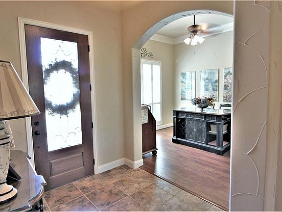Beautiful custom home on 1.149 acres. Neutral colors and is in immaculate condition, with tile and laminate flooring only-no carpet. One story with split bedrooms and 4 full Baths. 4th Bedroom has private bath with walk-in tub, great for a Mother-in-law Suite. Kitchen has granite, breakfast bar and 5-burner gas cooktop, and counter-depth LG French door refrigerator. Private master boasts dual sinks, jetted tub, separate shower & 2 walk-in closets. Wide crown moldings & baseboards, arched doorways & ceiling fans throughout. Resort-like setting with beautiful heated, salt water pool with spa retreat. Outdoor Veranda spans the length of the house in back. This is a Must See!
