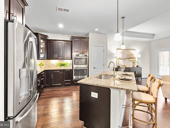 PEACEFUL WOODED VIEW! UPGRADED PLATINUM KITCHEN! BEAUTIFUL WOOD FLOORING!! If you’re seeking 55+ Open Plan Living with 3 Main Level Bedrooms THIS IS THE ONE! This stunning home features many valuable upgrades including a True Double Oven, Plantation Blinds on the Main Level, Tiled Laundry with Front Load Washer/ Dryer, a utility sink, and wood floors extend into 2 of 3 Bedrooms!! You’ll enjoy 3 exterior covered areas perfect for making new friends, or communing with nature. Magnificent Great Room views are the first thing you see, then you'll notice the upgraded gas Fireplace, perfect Dining Area and beautiful Kitchen. You'll create delicious treats in the tastefully tiled backsplash hi-lighted by under cabinet lighting, granite tops, great storage, like new Stainless Appliances including a French Door Fridge, Double Oven, Pantry and Island. The Primary Bedroom has direct deck access; perfect for morning coffee in nature! Plus, 2 closets, custom blinds and a simply gorgeous ensuite bathroom featuring a tiled Super Shower with seating in today's colors! REC-ROOM provides a KITCHENETTE/ WET BAR with full fridge, bar style eating and storage. Plus, there's a full Bath, and an unfinished area perfect as a hobby area, or make it a 4th Bedroom with 2 windows. Visit this very special home in Award Winning 55+ Virginia Heritage soon! It’s close to Shopping and Medical, VRE, Commuter Lot! HOA fee includes FIOS Internet & Cable and fabulous Club House with 2 Pools, Exercise Room and much more!!!