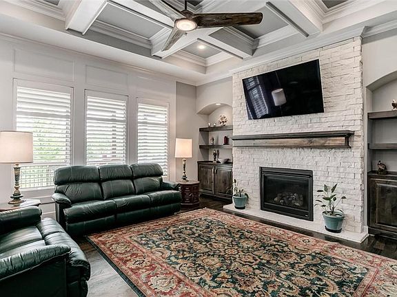 a large walk-in pantry and a living room fireplace with custom Stone to ceiling and Built in Cabinets. Private Primary