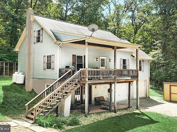 This is the ONE that you have been waiting for!!! Located back a private lane, in a secluded setting on 1.9 wooded acres, this 3 bedroom 2.5 bath Cape Cod home is sure to please!! Featuring a first floor primary suite with walk in closet, First floor laundry with front load washer and dryer in included, Half Bath, Large Foyer, and a Great Room with vaulted ceiling that offers an Open Kitchen, Dining, Living Area with views of the surrounding country side!! The Kitchen includes an island, and all appliances, as well as French doors out to the back deck. Off the foyer is the front door out to the covered front porch. All rooms on the first floor are either LVP, Ceramic Tile, or hardwood!!! Ascending to the second floor you will find the bedroom to the left with upgraded LVP flooring, and two closets, the bedroom to the right with LVP flooring and one closet. The Hall bath features LVP and a Vaulted ceiling. Descending to the basement you will be greeted by partially finished Rec Room with a wood stove, built in shelving, and a closet that is home to the propane furnace, electric hot water heater, and water softener. Off to the right side is the oversized two car garage with interior measurements of 22' deep, by 25.8' wide, with two openers, and a 200 amp electric box. Other features include two sheds, and a large chicken coop. Surrounded by dense woods, and the great out doors, this is a hard to find seclude property. Must see to appreciate!!! And if all of this is not enough, Comcast is available for Cable and Internet!!