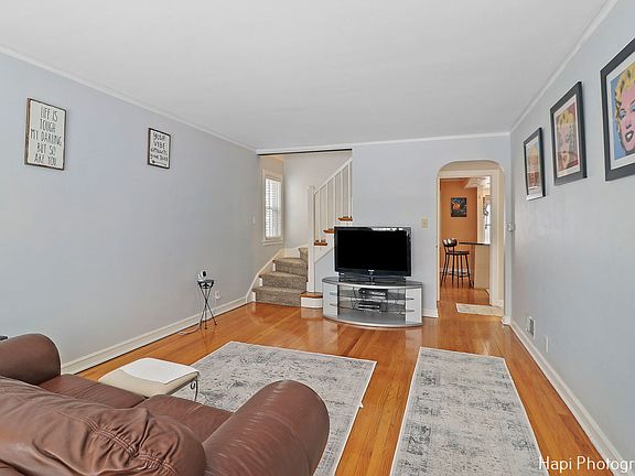 Wonderful home close to all transportation and a short drive to the Kennedy. This home has a lovely entrance leading to a spacious light filled living room. Come view the gleaming hardwood floors throughout most of the house. It has 3 spacious bedrooms. 1 on the main level and two large bedrooms on the second floor. 2 updated baths. Wonderful updated eat in kitchen with island and counter seating. Adjacent sunroom lives up to its name and overlooks huge fully fenced yard with large two car garage. Cement driveway and patio for entertaining. Basement has large family area with a separate laundry room. Additional storage area and its own entrance. This is a truly beautifully maintained home.