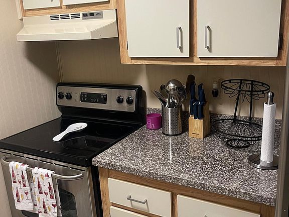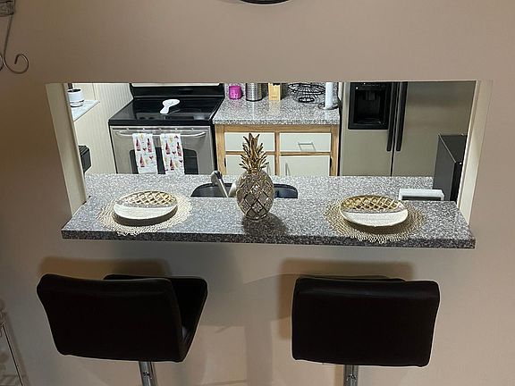 Nice kitchen with garanite countertops and stainless steel appliances.