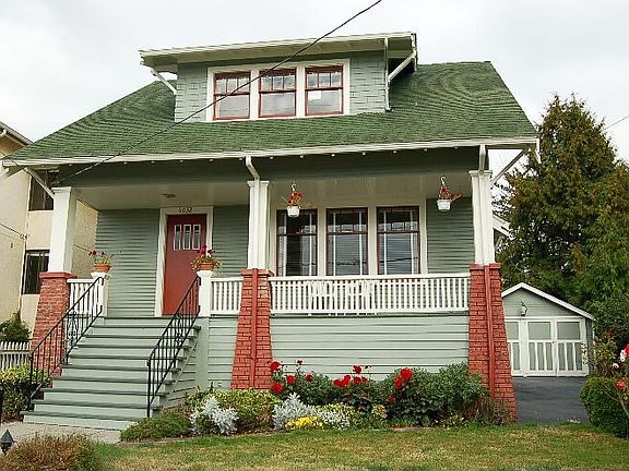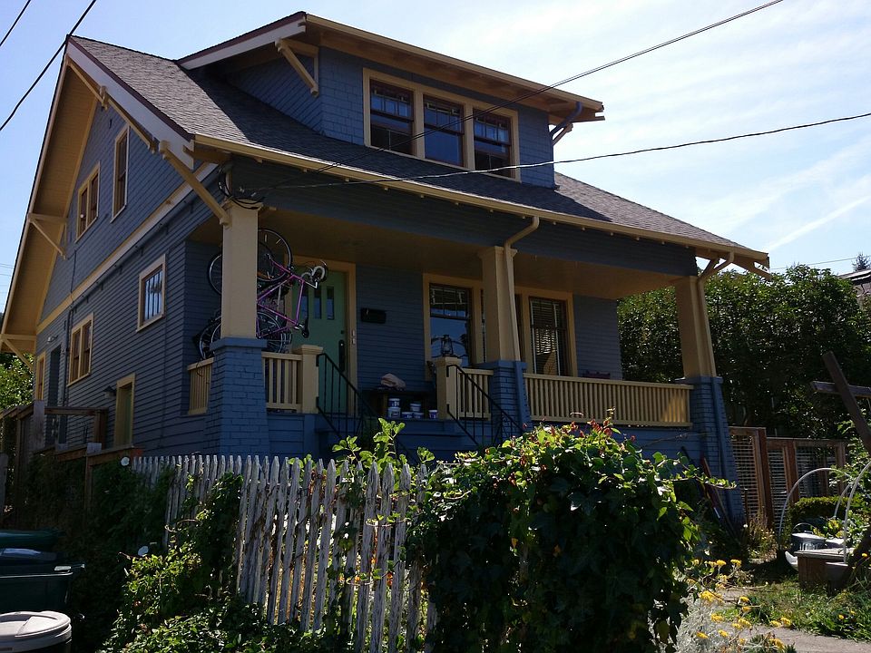 Enjoy sunsets from the Rocking Chair front porch of this circa 1915 Craftsman home! Period details such as formal entry, grand staircase, French doors, 9ft ceilings, hardwoods and vertical grain fir, original moulding, and a charming corner fireplace. Nice view of the Olympic Mountains and a handy 2 car garage. New roof and electrical panel. As a legal Duplex (+ additional guest apartment) there is a great opportunity to own this home while creating income, or design your vintage dream home.