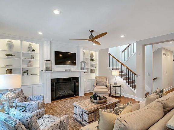 - Features: Bookcases, Fireplace, Walkout, Window Treatment, Wood Floor