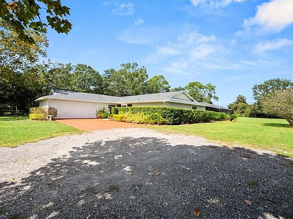 The Florida home of your dreams is now available in Wesley Chapel just minutes from Interstate 75 and some of the finest shopping, dinning and schools in the Tampa Bay metro area. Situated just off Old Pasco Road and SR 54 this picturesque home at 6032 Country Club road is on over an acre of land. As you pull into the driveway of the spacious front yard the first impression is deceptive with it's tasteful landscaping giving little clue as to what you'll find inside this 3800 square foot home. Entering this sprawling one level home you pass through the screened in front porch complete with swing to open the double doors stepping into a tiled hallway of this stunning three bedroom two bath home. Straight ahead you enter the formal living room complete with hard wood floors and working stone fireplace with built in bookshelves. Moving forward you step out the large sliding door-wall into the Florida room, a casual gathering place for entertaining with an open air atmosphere and access to the one acre backyard overlooking the in ground screened in private pool, resurfaced in 2018 for $8,000 this jewel will shine for years to come. Access the master bedroom is from the front hall way or the door wall leading to the Florida room, it features hardwood floors, a walk in closet complete with custom organizers, newly remodeled bathroom with two vanity's and tiled shower and tub. The hub of the home is the stylish open concept kitchen with stainless steel appliances and granite counter tops, it's accessed from the front hallway or the living room. The kitchen, dining room and hallways all have ceramic tile flooring and standing at the kitchen sink you overlook the Florida room and pool. There's a pass threw counter that seats two and overlooks the dining room which is large enough for two china cabinets and two large dinning tables and a breathtaking view of the Great Room. With it's high ceiling, hardwood flooring, and large stack stone fireplace with massive mantel, it was recently converted with an electronic fireplace insert. This Great room is perfect for family gatherings and entertaining. The hallway off the kitchen leads to a second full bathroom with tub/shower, a second pantry, a large closet and two bedrooms with closets. But that's not all, at the end of the hall is a small office space with large closet and still further is the laundry area with washer and dryer, game room transformed from a 2 ½ car garage and a door leading out to the side yard shaded patio with three metal storage sheds along the fence line. The septic system was completely redone in 2018 at a cost of $7,500 with a new drain field and lift station. This older established neighborhood has no H.O.A. fees or restrictions and there's plenty of room pets to run in the fenced in yard that even has water and electric hookups to park an RV.