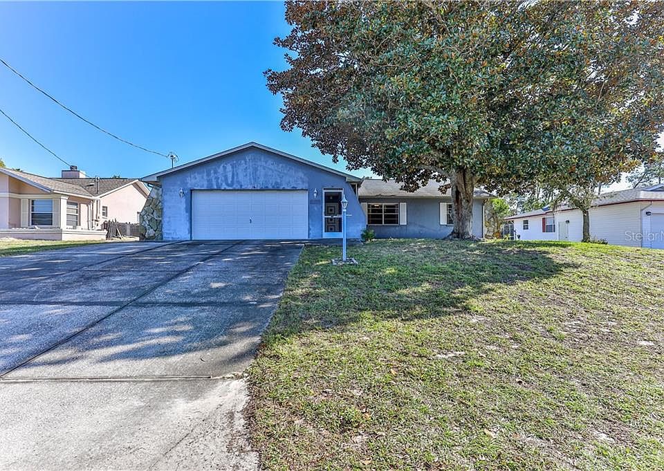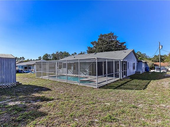 Some TLC will make this gem shine. This home features a screened entry, a large great room with adjacent dining room, spacious kitchen with lots of cabinets, pantry closet and breakfast nook. The bedrooms are of split design providing privacy for the spacious master suite - complete with private bathroom, dual sinks and a large walk in closet. Sliding doors off the dining area lead to the covered lanai overlooking the screen enclosed in-ground pool. There is access from the pool to the master bath so you don't have to track thru the house. There's a shed in the backyard for storage, in addition to the 2 car garage!