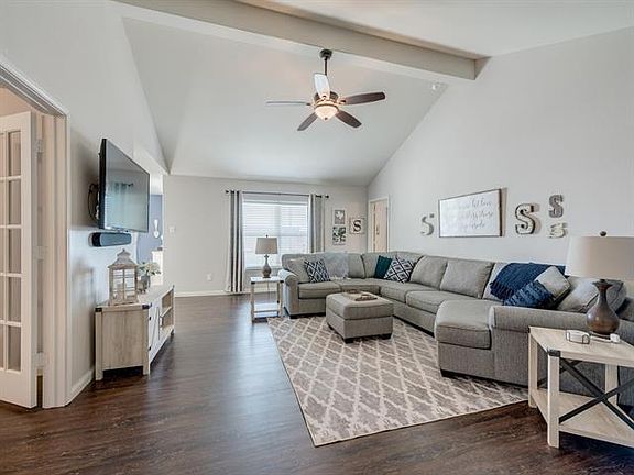 Move in ready! This 4 bedroom 2 bathroom house offers the desirable open floor plan and split bedroom layout everyone is looking for. Built only a few years ago with recent updates that give it that charming farmhouse look! You will fall in love with the white kitchen with 42in cabinets, granite counters, and SS appliances. Large enough dining nook to fit a 6 person table and coffee station. Enjoy a move in your spacious living area with vaulted ceilings and is perfect for that big sectional couch! 4th bedroom offers french doors that can be used as a home office which is helpful for anyone who works remote! Owners suite can fit a king size bed! BBQ under the cover and enjoy the extended patio space.