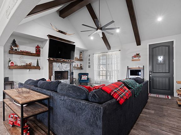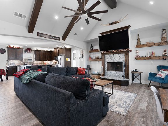 Welcome to 6033 Berry Ridge, a beautiful blend of rustic charm and modern comfort on a spacious country lot. This 3-bedroom, 2-bath home offers thoughtful design, stylish finishes, and an inviting backyard oasis perfect for entertaining or relaxing year-round. Step inside to discover an open-concept living area with vaulted ceilings accented by dark wood beams, a cozy stone fireplace, and plenty of natural light. The kitchen is a showstopper, featuring rich cabinetry, granite countertops, a large island with seating, and designer tile backsplash — ideal for gathering family and friends.The split-bedroom layout provides privacy, with a serene primary suite showcasing a luxurious ensuite bath with soaking tub, walk-in shower, and dual vanities. Secondary bedrooms are spacious and tastefully finished, perfect for family or guests. Step outside and unwind in your own backyard paradise! The in-ground pool with a tanning ledge and covered outdoor pavillion create the ultimate space for BBQs, game days, and Texas sunsets. The property also includes a carport , workshop, lean to barn , fenced yard, and plenty of room for kids or pets to play.Located in a quiet, established neighborhood and in Godley isd , this home combines country serenity with easy access to nearby shopping, dining, and Chisholm Trail Parkway for quick commutes to Fort Worth.