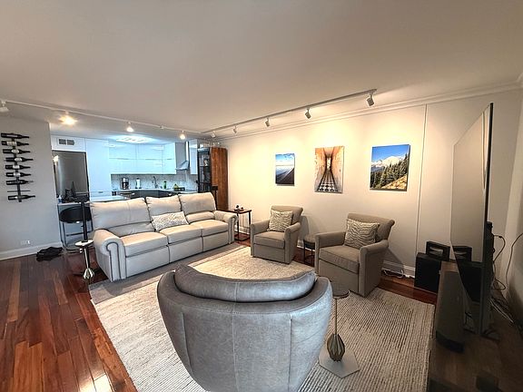 Forget everything you know about typical one-bedroom residences at Malibu East. This exceptional 1,000-square-foot home offers a rare combination of refined design, thoughtful upgrades, and everyday functionality-ideal for buyers seeking a one-bedroom that truly lives larger. At the heart of the residence is a true chef's kitchen, outfitted with premium European appliances, including a professional-grade WOLF induction range, Miele counter-depth refrigerator/freezer, and Bosch dishwasher. Designed for both serious cooking and effortless entertaining, the kitchen anchors the home with style and performance. Throughout the residence, Brazilian cherry hardwood floors provide warmth and continuity, complemented by elegant crown molding that adds architectural depth to both the living and bedroom spaces. The European-inspired bathroom has been fully remodeled into a spa-like retreat, featuring designer fixtures and radiant floor heating for year-round comfort. Significant infrastructure improvements distinguish this home from others in its class. Major system upgrades were completed in 2019, including central heating, cooling, and a new water heater. A 2025 electrical panel upgrade supports modern living and a designer two-tier dimmable lighting system, allowing the ambiance to be tailored throughout the home. Attention to detail extends to every corner, with fully custom-fabricated sliding glass doors, entirely replaced from the frames through all mechanical components. These are paired with a three-part designer window treatment system, including full blackout shades in both the living room and bedroom, providing exceptional light control, privacy, and clean architectural lines. Located in a professionally managed, full-service building with secure garage parking available, this residence represents a rare opportunity to own a thoughtfully upgraded home where quality, comfort, and long-term value align.