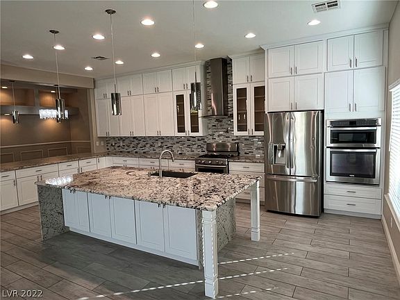 Fantastic 4 Bedroom Custom Home. True pride of ownership. Located in a well maintained gated community, this beautiful home has never been rented. The open concept living area boasts, vaulted ceilings, custom tile, ceiling fans, fireplace, plant shelves and more. The kitchen is complete with recessed and pendant lighting, custom stone countertops, stainless steel appliances, custom cabinetry, breakfast bars, double ovens, and more - a cook's dream. The oversize primary bedroom has a sitting area, vaulted ceiling, ceiling fan & yard access. The primary en suite has stone counters, double sinks, and a steam shower. The backyard is wonderfully maintained and is complete with artificial turf, mature trees and a large covered patio. The unmentioned upgrades, tankless energy efficient water heater, water treatment system, washer & dryer, pool table, and three car garage make this a keeper!
