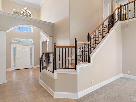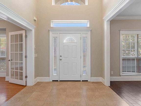 Don’t miss this exceptional custom home with a screened-in pool in the highly sought-after Hammersmith subdivision. From the moment you enter, you’ll be impressed by soaring 18-foot ceilings, elegant crown molding, and wide baseboards that highlight the home’s craftsmanship. The main living areas feature custom ceramic tile flooring and a spacious great room with a gas fireplace and built-in entertainment unit—perfect for relaxing or hosting family and friends. This thoughtfully designed split floor plan offers both comfort and privacy. The master suite and a fourth bedroom with an adjacent full bath are located on the main level, while two additional bedrooms and a full bath are upstairs. The luxurious master suite features dual vanities, an oversized walk-in closet, a whirlpool garden tub framed by privacy block glass, and a separate shower. The gourmet kitchen is a standout, featuring Corian countertops, a raised breakfast bar overlooking a center island with a second sink, a walk-in pantry, and a convenient built-in workstation. Across the foyer, a spacious 16 x 11 office provides the perfect work-from-home setup or study space. Additional highlights include a built-in central vacuum system, a circular driveway, and an oversized side-entry garage designed for large vehicles. Sitting on a .33-acre lot and zoned for the desirable Dixon, Sims, and Pace schools, this home combines comfort, quality, and lifestyle—complete with your own private pool retreat.