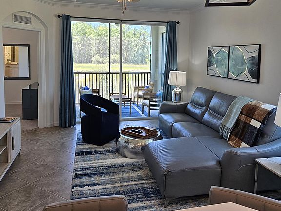 Stunning 3 bedroom end unit w/ the perfect "trifecta" of breathtaking views...Lakes, Golf, and Preserve. Fully stocked and decorated so you can move right in whether short term (one month) or longer. The National Golf and Country Club is quickly becoming the next "destination" vacation place. FREE BUNDLED GOLF comes with this unit so there are NO GREEN FEES! (only $30 golf cart rental). 3rd bedroom has gel foam Queen sleeper plus desk for quiet work or Internet times. For next season many more amenities will be open in addition to golf and pickleball such as satellite pools, outdoor bar and grill, fitness center, tennis center, bocce ball and more. Find out why Ave Maria is the 16th fastest selling community in the ENTIRE UNITED STATES. $150 HOA transfer, $100 golf transfer, and $295.00 departure cleaning fee. LANDLORD pays the biggest fee of 12% hotel taxes! So, this is a bargain vacation spot. Once you visit, you won't want to leave.