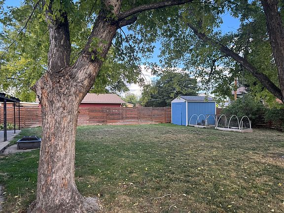 Large fenced yardIrrigated garden bedsTwo storage shedsHuge master suitePrivate bathCovered patioEat-in kitchen