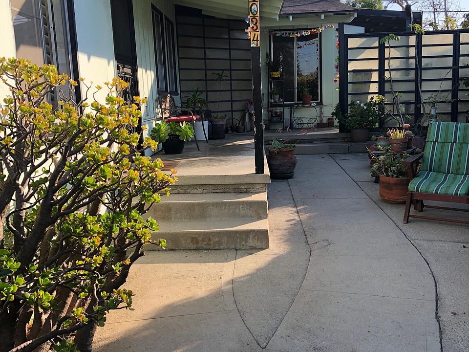 Warm, charming 2-Bedroom front duplex w Private Yard/Enclosed Patio. Freshly painted. Plantation shutters. Hardwood floors in l/r & hall. Tiled dining, kitchen, bath; new carpets in bedrooms. All appliances incl refrigerator. Street parking, no smoking. Weekly gardener. Neighborhood shops w/in walking distance in "The Triangle": restaurants, wonderful bakery, record store, bookstore, chiropractor, medical buildings. Trader Joe's, Ralphs, Home Goods, Panera, Kohls, Ross, etc. Renter responsible for gas and electric; owner pays for water. Renter takes down trash/recycling/compost weekly. First month's rent and $3,175 security deposit due at signing. Street parking. Small pets ok with non-refundable pet deposit. No smoking in house.