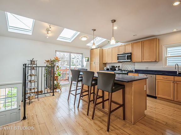 Welcome to your dream home in highly coveted Edgewater! Enjoy abundant natural light in this south-facing, 2-story Workers Cottage with a modern addition sure to make anyone feel right at home. As you step inside, you'll be greeted by an open floorplan that seamlessly blends charm and modern convenience. The kitchen is a chef's delight with loads of counter space, and features maple shaker cabinets, stainless steel appliances, including a Miele dishwasher (2019), a sprawling island, skylights and full bath, connected to a separate dining area and large living room, all perfect for entertaining. Upstairs, you'll find three spacious bedrooms and a newly refreshed full bath, offering ample space for relaxation and rest. The full basement offers additional living space, a walk-in-closet perfect for wine storage, a powder room, office area, utility rooms and great storage. Additional highlights include a 2-car garage (built in 2011), a small deck off of the kitchen, and a gorgeous backyard on a large lot (25x127x30x144), providing the perfect oasis for outdoor enjoyment. Improvements abound throughout the home including a new sump pump and washing machine (2022), hot water heater (2019), new roof, gutters, and front porch (2017), and windows (2018), among others. With dual zone heating and central air, comfort is guaranteed year-round. Conveniently located within walking distance to Starbucks, Target, supermarkets, all of the shops and restaurants of Clark Street and Andersonville, parks, and so much more. Plus, with the upcoming Peterson/Ridge Metra Stop just steps away, commuting is a breeze. Don't miss your chance to own this well-maintained home in one of Chicago's most coveted neighborhoods.
