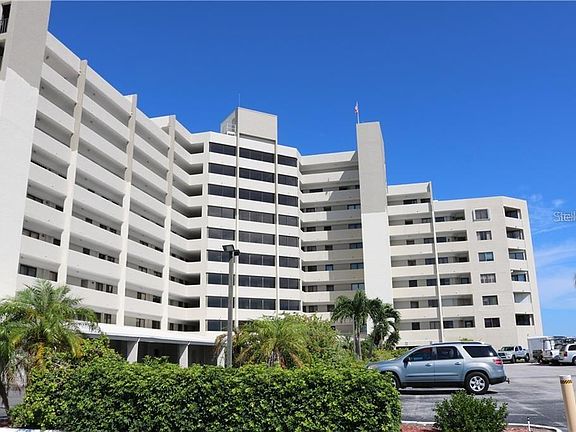 BEST VALUE AVAILABLE IN THIS BEAUTIFUL GULF FRONT COMMUNITY! Enjoy the ultimate gulf coast lifestyle in this meticulously maintained fully furnished and equipped 4th floor abode where breathtaking panoramic vistas stretch endlessly before you. Relax on your private covered balcony with your favorite beverage and/or meal relaxing to the soothing sound of the waves and refreshing Gulf breezes. This island community is " Nature's Paradise" where you can spend your time watching dolphins, manatees, turtles, and rays frolic in the sparkling water and the pelicans, osprey, ducks soar around. The interior flows beautifully with an open and airy floor plan with stunning water views from the kitchen through the great room and master suite through the 2 huge 8ft sliding glass doors.Master bath boast gorgeous new custom step in shower. Spacious guest suite with adjacent bath awaits your very special guests. Condo features an additional bonus room which could be used as an extra guest sleeping area with pull out sofa or also be designed as an office, den, or additional dining area. Condo also includes assigned parking space in the parking garage and stackable washer and dryer. Newer upgrades include vinyl plank style flooring, A/C system,front door, and Hurricane protection screening. The island community is surrounded by water except for the 24/7 guarded entry for your upmost security. It features a Gulf front heated swimming pool, Nature's trail, Private Sandy beach, waterside picnic area, tennis & pickleball courts,fishing, and kayak storage rental space. Assigned boat slips in the community Marina become available to purchase or rent occasionally. The monthly maintenance fee includes all amenities, 24 hour guards, and all the utilities including cable and Wifi except electricity. Milestone Inspection is completed and building passed. No Increase in monthly fees or large assessment was required or expected in the future like other area waterfront condo communities have experienced. Local waterfront restaurants and casual beach bars are easily accessible by boat or vehicle. Enjoy multiple area State Beaches and Parks, golf courses, shops, and the close by Sun West Water Park. Easy access to all that the Tampa Bay and the St Pete/Clearwater areas have to offer day or night. This community is one of the Best Waterfront values and Best kept secrets around. This condo is the BEST VALUE in the community. View the community tour to walk along the Nature's Trail and beach and fly over the community. Live the great Florida Gulf front lifestyle without the fear of being flooded !! Call today for Your Virtual or Private in person viewing.