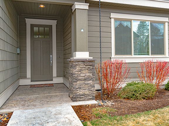 One of a kind home in desirable Stonegate Community!The Bachelor floor plan by Pahlisch Homes has the look and feel of a brand-new custom home. The owners built this home and hand selected every stunning finish& feature. The home beams with natural light from all the large wood-wrapped windows and vaulted ceilings. And the abundance of light highlights all the tasteful high-end finishes throughout, like wood-wrapped pillars, wainscoting framed dining area and full mosiac tile backsplash wrapping the kitchen. White painted cabinets & quartz counters. Fantastic floor plan for entertaining! An open concept kitchen, great room and dining area on the main level and upstairs a retreat-like master bedroom with 2 guest bedrooms separated by a large bonus room. And for outdoor entertaining, you can enjoy 2 covered patios while surrounded by tall pine trees and privacy. There is even a private hot tub enclosure right off the back patio. Located on a large corner lot.