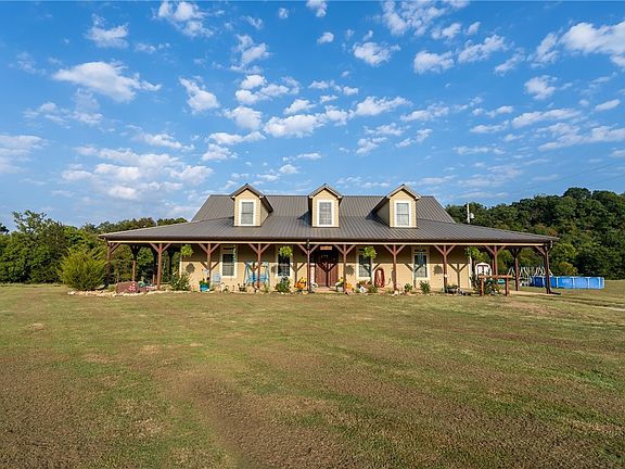Country living at it's finest. Gorgeous custom built home with wrap around porch on 4 sides. 4 bedroom home with 3 1/2 baths with a huge bonus room/ theater room. Beautiful custom cabinets with in the open kitchen. Great for entertaining guest. Unique year around creek cut deep in natural stone. open pasture land with plenty of timber for hunting and riding atv's. Home is custom built with many upgrades. Bring your animals and store your hay in the 40 x 55 hay barn with tack room for your horses. Corrals to work your cows. live spring that provides water year around. Close to low water bridge on the Illinois River.