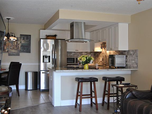 This beautifully updated 2 bed one and a half bath condo features a stunning kitchen with gorgeous granite, stainless appliances and seating at the breakfast bar. There are many upgrades throughout including 5 & 1/4" baseboards, ceiling fans, beautiful luxury vinyl plank and ceramic tile flooring, new 6 panel doors, knockdown textured ceiling, fresh paint, updated windows with blinds and a chair rail in the dining area. There is a full size, stacked, front loading washer and dryer included. Unit includes 2 parking spaces. There is a community pool. Cedar Pointe is 55+ community centrally located near shopping, dining, medical facilities and much more. This is a well funded condo association. This condo is in a non flood zone!