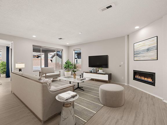 Welcome to this beautifully maintained, barely lived-in home that feels almost brand new! Built just 1 year ago, this immaculate residence offers the perfect blend of modern design & comfort & is move-in ready w/ numerous high-end amenities. Energy Efficient & Certified Build Green NM Silver w/Low-E windows, tankless hot water heater, R-23 wall insulation & more. Open flrplan w/natural light, formal DR, chef's delight kitchen w/stainless steel appl, island w/pendant lighting, gas cooktop, quartz counters, & tile backsplash. Smart home technology, Wifi garage door, EV charging station, modern gas log FP, Ref Air, wired for ceiling fans & alarm, tile flrs, carpet only in bdrms, washer/dryer/ref convey, xeriscape front, & lg paver patio. Enjoy the benefits of new construction w/out the wait!