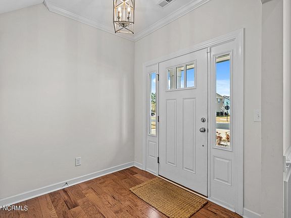 Come see this beautiful two story home with hardi plank siding, brick accents and lots of natural light! This gem features a formal dining room with coffered ceiling, judges paneling and a butler's pantry providing direct access to the kitchen. The kitchen boasts a large island with upgraded cabinets, quartz countertops stainless steel appliances. This opens to the family room and is a perfect space to entertain. The sunroom can be used as a breakfast room or a play room. Master bedroom features trey ceiling, spacious master bath with quartz counters, double bowl vanity, linen closet, tiled 5 ft shower and his and hers closets. The large laundry room is located off the master and has extra cabinets for more storage. Three guest bedrooms and a guest bathroom round out the upstairs. The first level boasts stunning birch hardwoods. Location is perfect...close to Carolina Beach, shopping, restaurants & more!