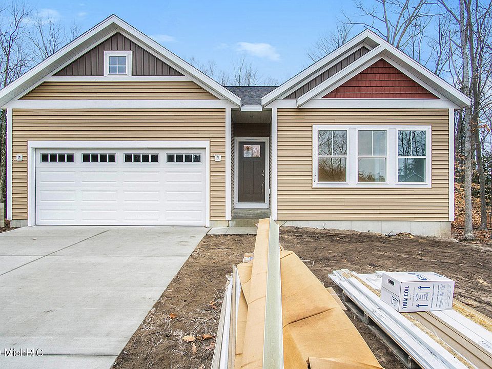 MOVE IN READY! The 'Cherry' is the largest ranch plan in Odeno and is situated on lot #55. Lot #55 is on a cul-de-sac with a wooded back yard and a walk out basement. The Cherry offers 3 bedrooms, 2 full bathrooms, and main floor laundry. This spacious floor plan offers over 1650 sq ft of living space. Upgrades include 9' main floor ceilings, quartz countertops and vinyl plank flooring. This plan hosts an open concept living area, kitchen with pantry and large island, generous dining area, and large living room. Spacious master suite boasts a double vanity and a walk in closet. On the opposite side of the home, two more bedrooms and a full bath complete the main level. The basement is plumbed for a full bathroom and can be finished by the builder, or by the homeowner in the future. Odeno i