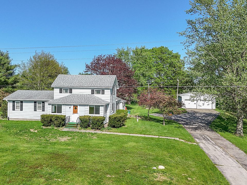 Welcome to country living! This 2 bed/1 bath home comes with 4+/- acres and a large drive-thru pole barn equipped with 3 overhead doors, cement floors and electricity. The interior features a spacious floor plan with main level amenities and replacement windows throughout. Take your shoes off in the mud/laundry room before entering the kitchen. Consider reverting part of the living room back to a 3rd bedroom if needed. The primary bedroom includes a walk-in closet and access to the main bathroom. The upper level holds a landing area, 2nd bedroom and easy access to attic storage space. The 4-seasons room located at the front of the home provides gorgeous views of the surrounding farmland. Schedule your private showing today!