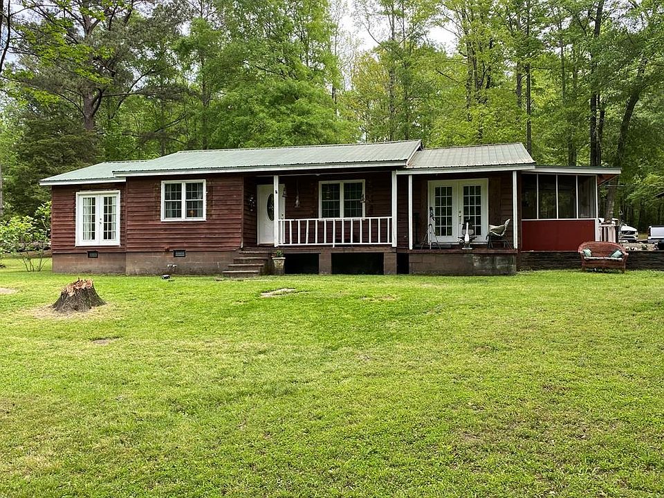 3 BR/2 BA home on 10.27 acres with a fully stocked, 14 feet deep 2 acre pond. The home faces the pond. 5-in hardwood throughout. Wood ceiling in GR. Kitchen has corian counters with copper and tile backsplash. Pantry. Owner suite with sitting room and MBA with jacuzzi tub, regular tub/shower combo, tile floor and built-in ironing board. Could be converted to 4 BR. Metal roof. New A/C. 30x40 Outbuilding with electricity and air compressor. Two-Car Carport. Composite dock. Bridges. Screened porch. Partially fenced.