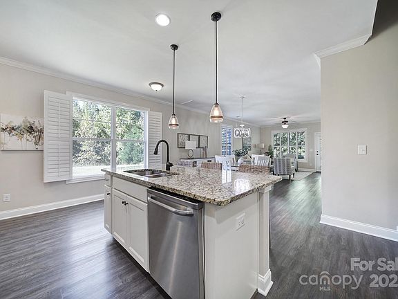 Plantation shuttersFresh finishesSerene wooded backdropBeautiful updatesElegant touchesInviting layoutExpansive open space
