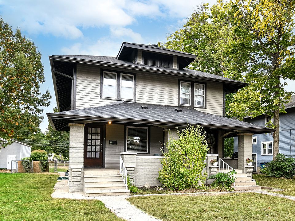 Broad Ripple Neighborhood. New Roof and exterior Paint! The unit features 1800+ sq ft. 3 bedrooms and 1.5 bathrooms, a cozy and functional kitchen with a small eat-in area, a formal dining room, and a welcoming living room-perfect for both relaxing and entertaining. Enjoy your morning coffee or unwind in the evenings on the classic covered front porch. Inside, you'll find hardwood floors throughout. Broad Ripple's Dan Wakefield Park is practically in your backyard...walk to splash park, tennis, pickleball and playground equipment out your back door! Just steps from the Canal Toe Path, Monon Trail and within walking distance to all that Broad Ripple has to offer...best restaurants, coffee shops, bars, and boutiques.