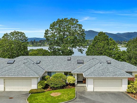 This 2718 SF, main level entry townhome, with walk out lower level is perfect for those looking to downsize from a single-family home but still wanting space for visiting friends & family & hobbies. This elegant home is an end unit with beautiful Quamichan Lake/Mount Prevost views, set in a premium lakefront development. The home has been very well maintained by the current owner & has a great floor plan with large, bright kitchen with eating nook, formal dining & entertainment sized living room with vaulted ceiling & propane FP. The large primary bedroom has a door to the large, redone, view deck & a 5 piece ensuite with soaker tub & separate shower. There is a generous second bedroom on the main floor with 2 closets plus a 3 piece main bathroom with a walk in shower. The lower level features a recreation room, third bedroom, den & full bathroom plus storage. The common property enjoys a gazebo & dock. Recent updates include 3 ductless heat pump heads and new kitchen appliances.