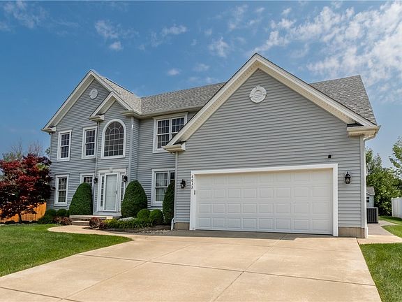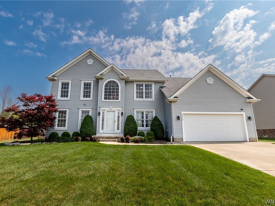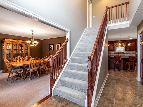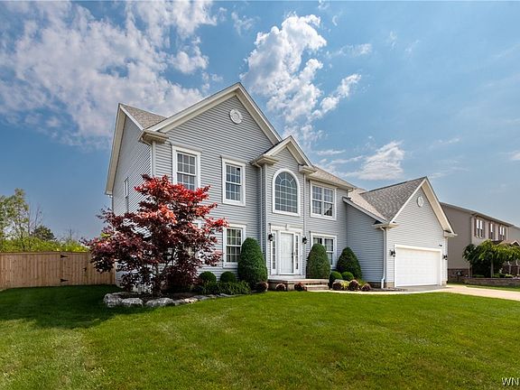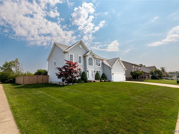 This beautiful 4bdrm/3 full bath home was custom built by Essex Homes; it offers a generous floor plan, 2 story foyer to a den with French doors & elegant formal dining room; The gourmet kitchen features tile floor & backsplash, Corian counters, beautiful maple cabinetry, SS appliances, center island & walk-in pantry. The spacious family room has a vaulted ceiling & gas fireplace; Back entry from the garage has tile floor, closet & full bath with Corian counter, tile floor & walk-in tiled shower. The 1st floor is complete w/an expanded laundry room. The 2nd floor has an overlook to the family room below; the primary bedroom has a glamour bath with tile floor, soaking tub & separate shower, 2 of the 3 additional bedrooms offer walk-in closets & there is a secondary full bath. The full basement offers lots of storage & is ready to finish; attached 2 car garage is painted & has a screen, concrete driveway; yard is fully fenced, covered back patio has 2 ceiling fans, recessed lights & Bose speakers, large shed! New roof in 2017; Surround sound in kitchen, dining room & primary bedroom; Easy access to Downtown Buffalo, close to Elementary school, Just move in & enjoy!