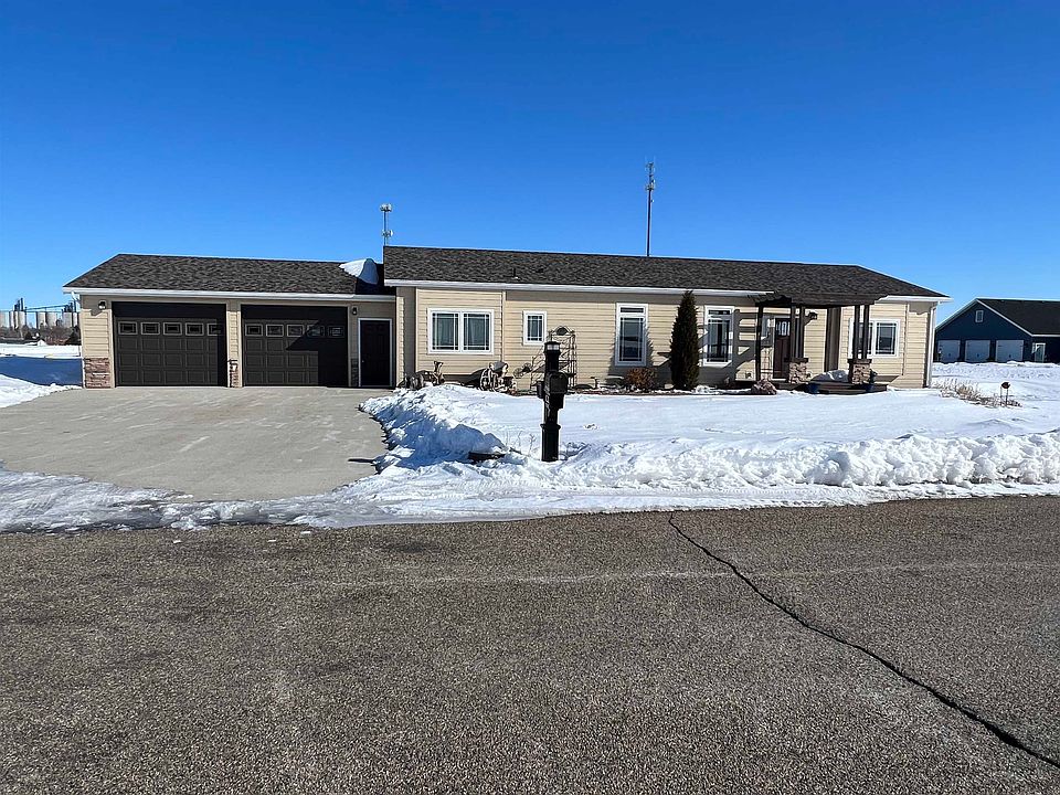 Take a look at this immaculate home! Walking into the home you will step into the gorgeous kitchen with custom hickory cabinets, stainless steel appliances, plenty of counter space, a large stainless steel apron sink, and an eat in counter. The dining room is open to the two living spaces in the home and features tray ceilings, french style doors to the back patio space and an electric fireplace for those chilly winter evenings.  The main floor also consists of 2 bedrooms, with the primary bedroom hosting a walk in closet, large bathroom with a walk in shower, jacuzzi tub and laundry room! The unfinished half basement is plumbed for a bathroom and ready for walls, features 2 egress windows, utility area, and fully cemented crawl space for extra storage. Extra amenities to this home include drain tile around the entire home, a whole house fresh air pump, Integrity fiberglass windows and floor heat in the garage. There is tons of character in this home you don't want to miss! This property is within walking distance to the new hospital! Call an agent today to set up a showing!