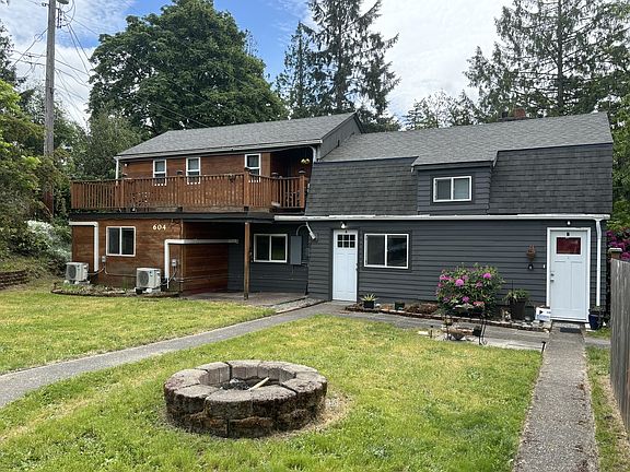 Enjoy outdoor living with a covered patio and firepit, perfect for relaxing or entertaining. The property includes 2 dedicated parking spots and is situated on a spacious acre lot on a quiet street, surrounded by mature trees. In the summer, you can enjoy the ample blackberries and Japanese Cherries throughout the property.