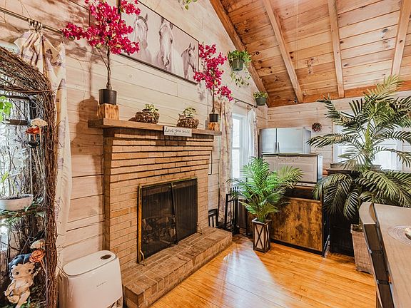 Wood burning fireplaceOpen spaceGarden boxesNice front porchGreen houseHardwood and tile flooringDog pen