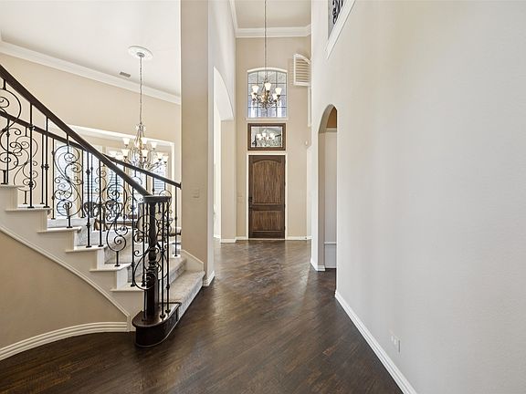 Oversized premium lots are rarely available! Capture this treasure nestled on a fenced lushly landscaped .610 acre lot creating a retreat for grilling beneath the covered patio & relaxing under the stars. Positioned 5 safe sidewalk blocks from the elementary-middle schools, community pool, parks- fishing ponds. Nearby: sunset dining, boating, historic downtown, & golf. Welcome to an elegant spiral staircase and gorgeous chandeliers! Open-floor plan features 24-ft custom ceilings, plantation shutters, hand-scraped hardwood flooring, & plush new carpet. Curved game room balconies overlook the living room, flowing into a media room perfect for movies & sports. Office has picture windows & privacy doors. Chef’s kitchen features a custom pantry, large island with deep drawers, abundant storage, slide-out shelving, & double ovens. This gem boasts a primary suite with sunken bathtub, walk-in retreat style dual-headed shower with pebble flooring & expansive walk-in closet. Upstairs includes an enormous game room, 260 sq ft of an additional flex room, a hidden secret room adds unexpected joy. 3 large bedrooms, a spacious Jack-and-Jill bath & a private bath. More? Enjoy a 3 car painted garage with epoxy flooring because this home provides 3 huge floored attic storage spaces! 3 HVACs! Utility room equipped with a sink and built-in cabinets. A convenient half bath downstairs. Meticulously maintained including a New roof with 20-year transferable warranty & Level 4 shingles, 2 new hot-water heaters and all new window frames & screens. This house delivers! Mortgage savings may be available for buyers of this listing.