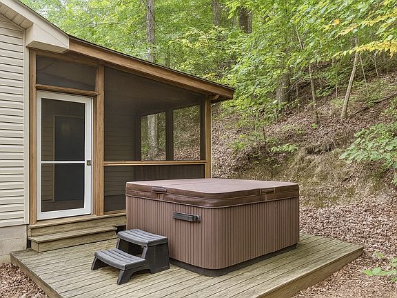 Sturdy decks and porchesBeautiful vanitySerene retreatMature hardwood treesPeaceful wooded viewsVaulted ceilingsCustom pine cabinets
